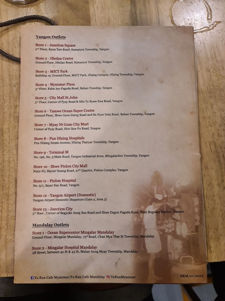 Welcome to Ya Kun Coffee & Toast, a delightful cafe located on Level 3 Pyay Road and Min Ye Kyaw Zwa Road in Yangon, Myanmar. This charming spot specializes in traditional breakfast offerings and refreshing beverages that transport you to the heart of Southeast Asia.